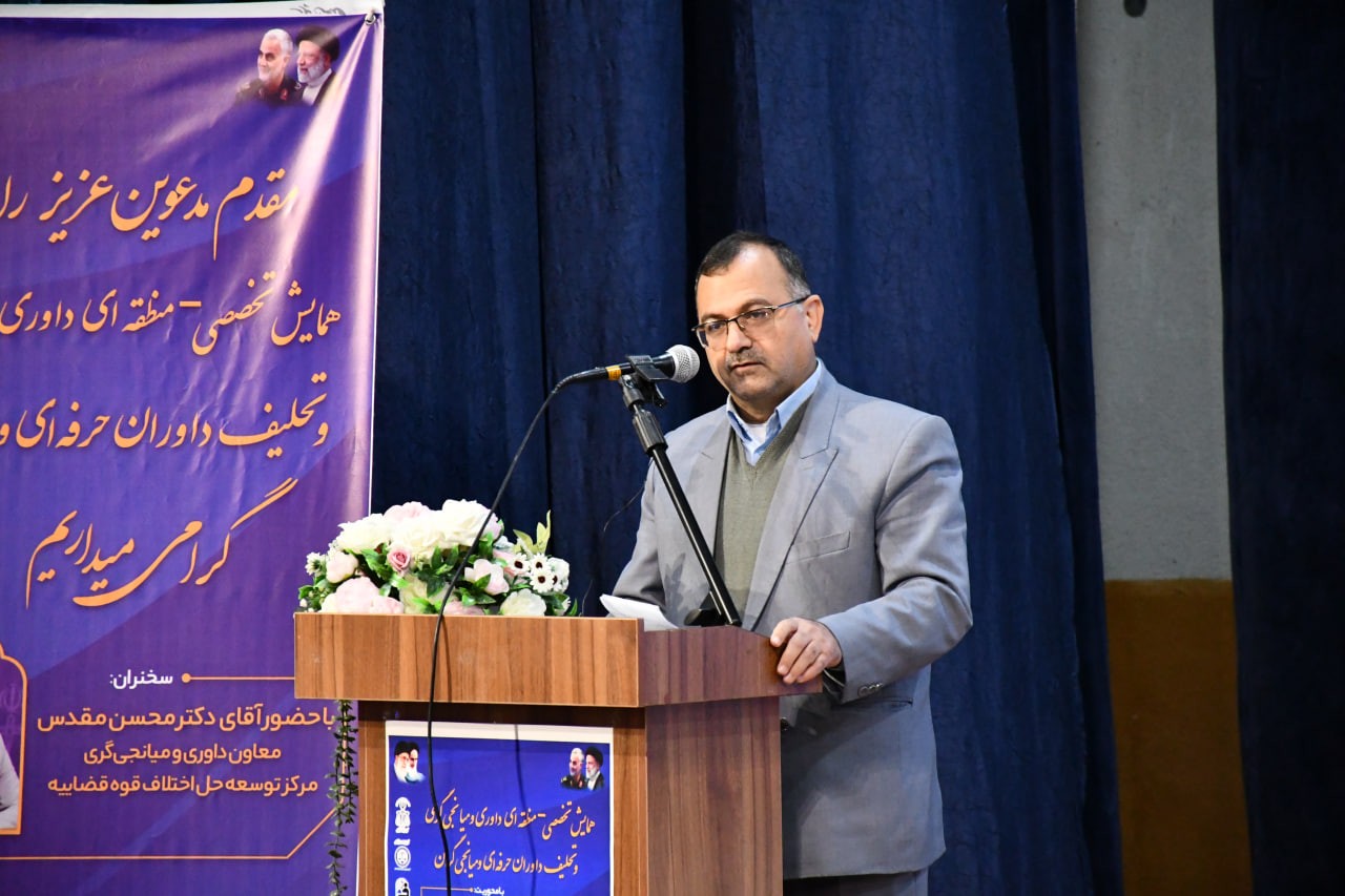همایش تخصصی منطقهای داوری و میانجیگری با حضور مقدسی، معاون داوری و میانجیگری مرکز حل اختلاف قوه قضاییه، آسیابی رئیسکل دادگستری استان گلستان و یوسفی رئیس اتاق بازرگانی، صنایع، معادن و کشاورزی گرگان برگزار شد.
