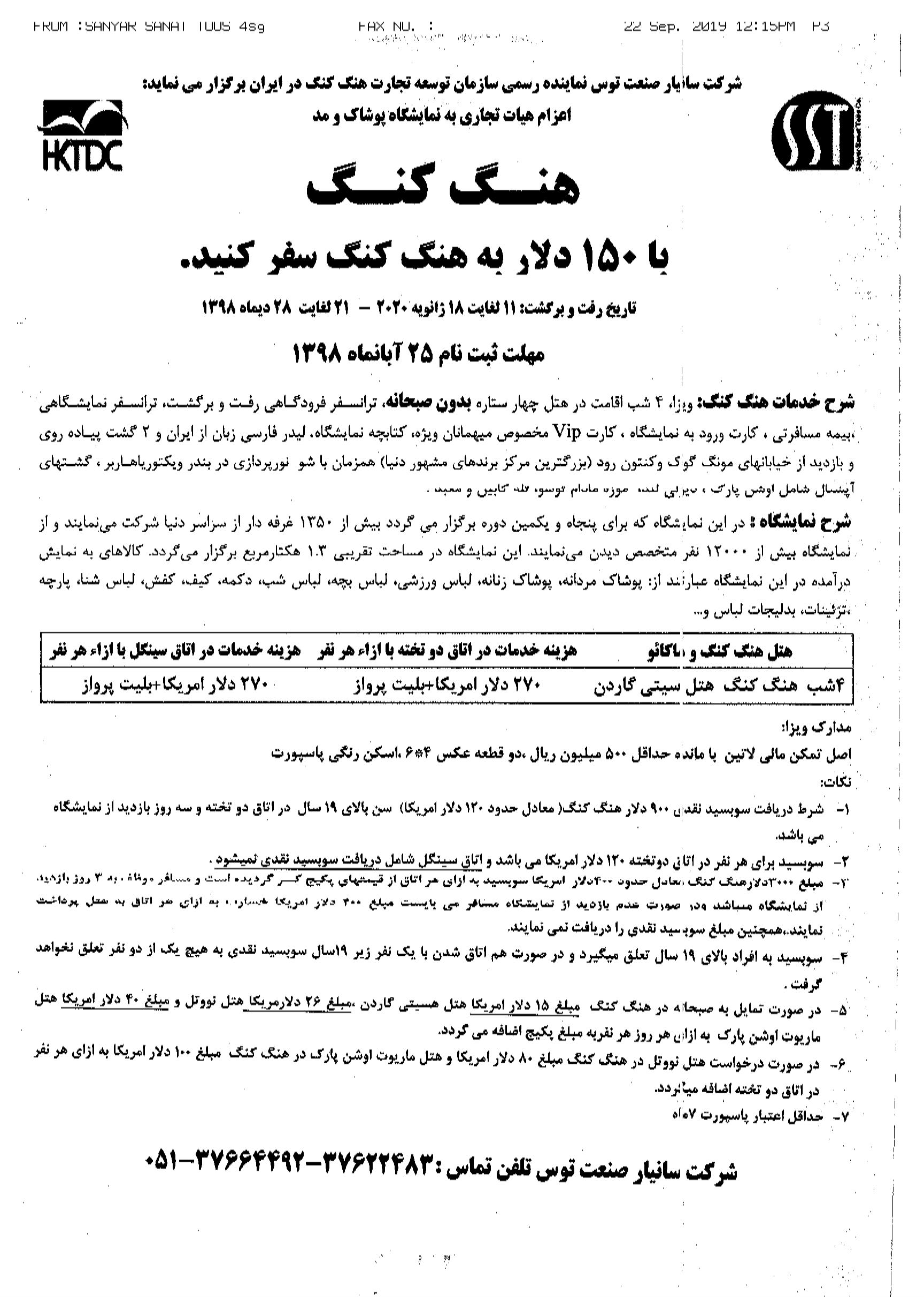 درخواست همکاری جهت اعزام هیئت تجاری به نمایشگاه اسباب بازی دنیا سیسمونی نوزاد و لوازم تحریر و پوشاک هنگ کنگ