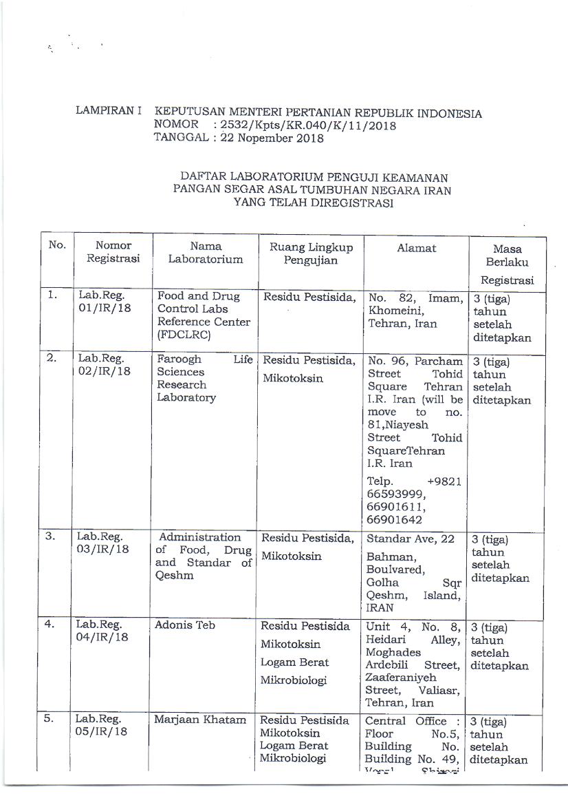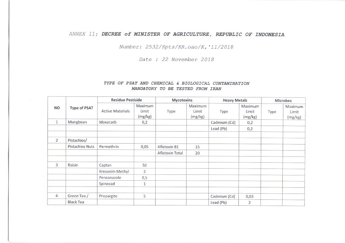 پیرو فهرست آزمایشگاههای مجاز محصولات کشاورزی ایران جهت صادرات محصول به اندونزی