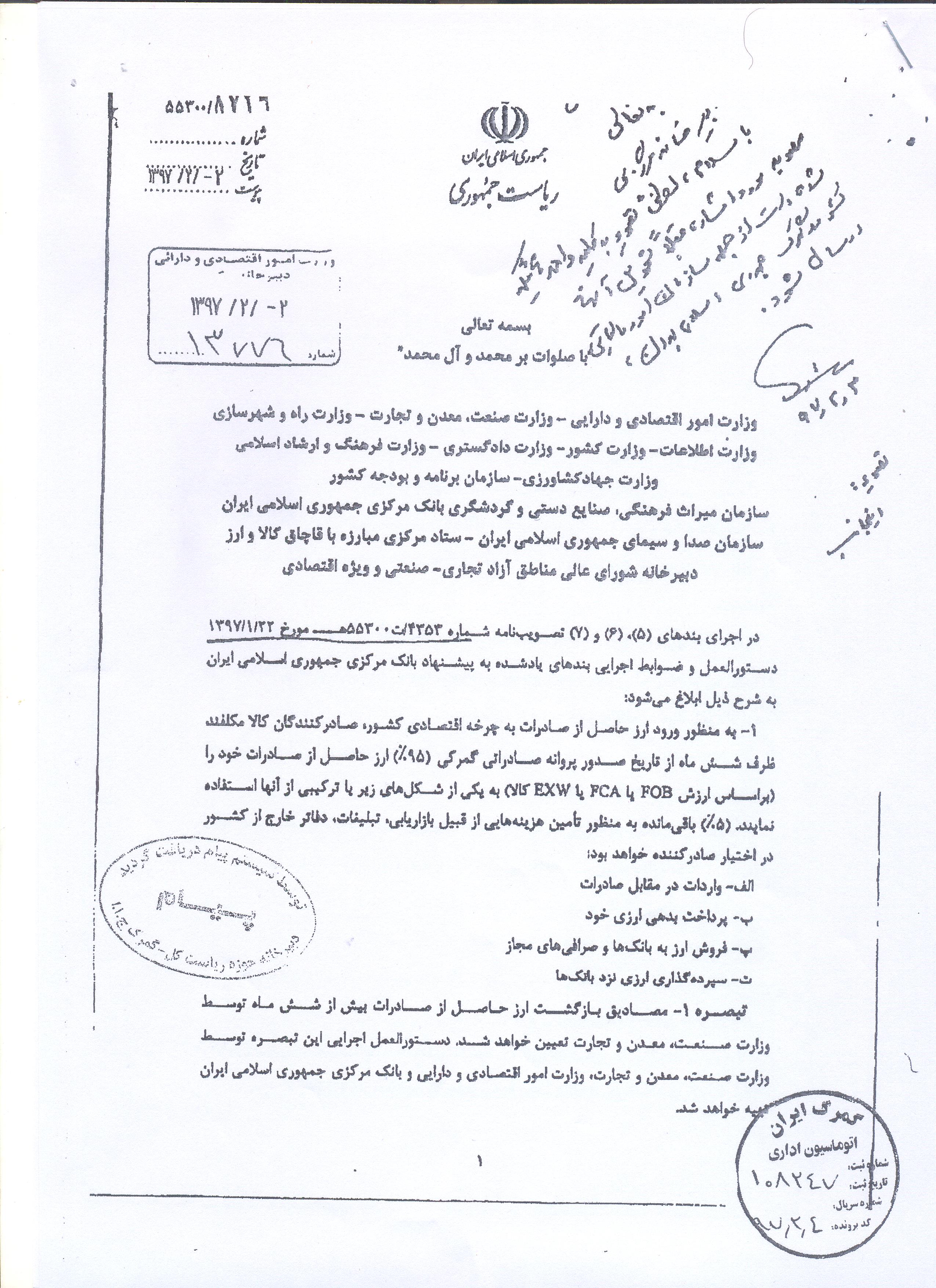 اتاق بازرگانی گرگان در نظر دارد با همفکری فعالان اقتصادی نسبت به بروز رسانی ارزش کالاهای صادراتی اقدام نماید، لذا از عموم صاحب نظران درخواست می شود با توجه به مفاد دستور العمل وضوابط اجرایی ابلاغی توسط معاونت اول ریاست جمهوری به شماره  8726/55300 مورخ 1397/2/2 (به پیوست) نقطه نظرات خود را به دبیرخانه اتاق ارسال نمایند تا در جلسه مشورتی که به همین منظور در روزهای آتی تشکیل می شود، مورد طرح و بررسی قرار گیرد.